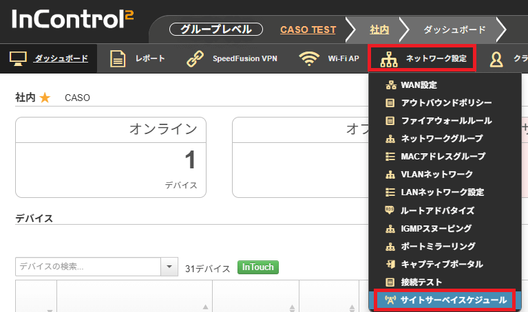 IC2で対応モデルが所属しているグループを開き、グループ>ネットワーク設定>サイトサーベイスケジュールを選択してください。