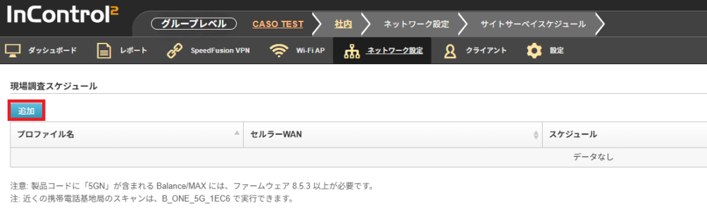 ※このページの下部に、グループに所属している機器でサイトサーベイ機能が使える機器が表示されます。