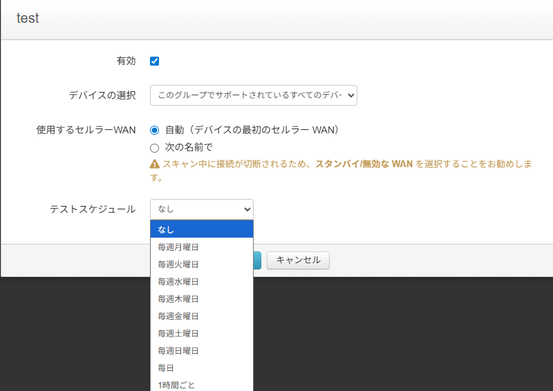 - 実行中は選択したCellular WANが切断されるため、そのWANを経由する通信が止まります