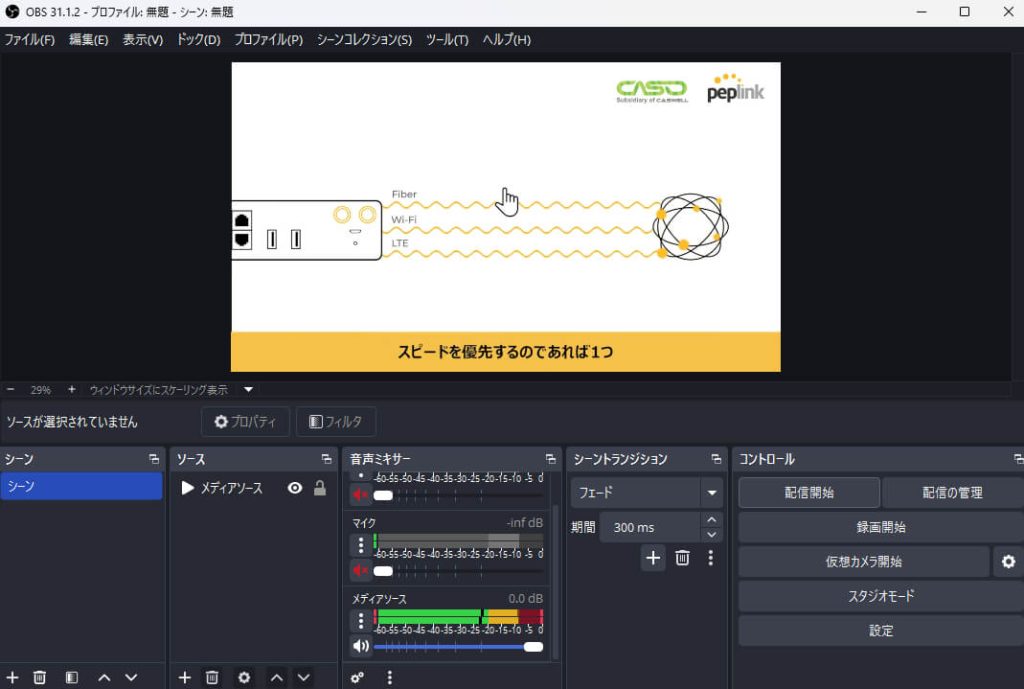 OBS Studio自体の解説や、PeplinkやSpeedFusion VPNの設定方法は構成やルーターにより参照するマニュアルが違う為、割愛します。