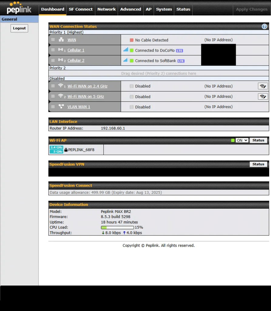 結論から、Peplinkルーターで閉域SIMは使用できます。
