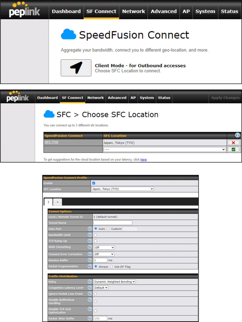 この後、実際にPeplinkルーターのSpeedFusion VPN経由で通信を行っていくわけですが、